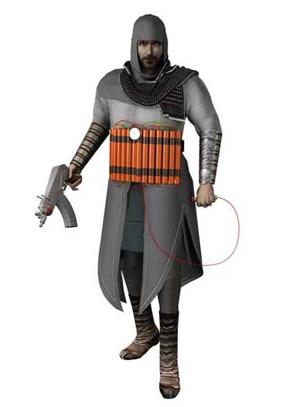 WB: I wanted to place it in the context of reality, the need to reflect life in art. What better way to reflect what Iraqis are going through than a personal tragedy, casting myself as a suicide bomber after the killing of my brother. I represent so many Iraqis who find themselves vulnerable to a terrorist organization like Al Qaeda taking over their homeland. They either become violent because of the pressure or they are forced to join these organizations out of fear or they join because of their outrage at what the U.S. is doing to their homeland.
